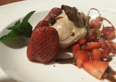 - MOUSSE DE QUESO CON FRUTOS ROJOS, CHOCOLATE Y ALMENDRAS
