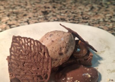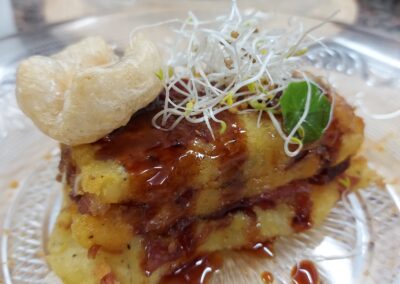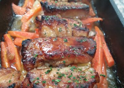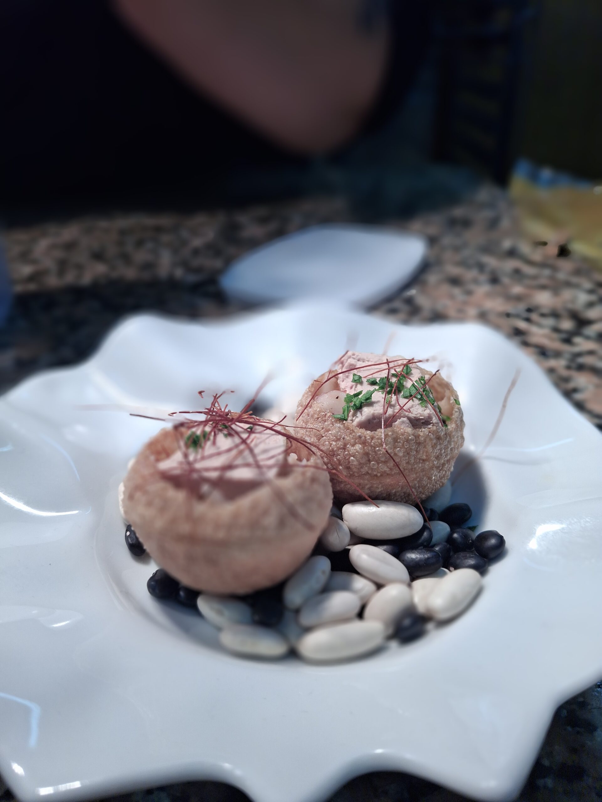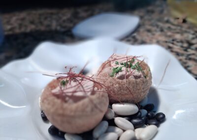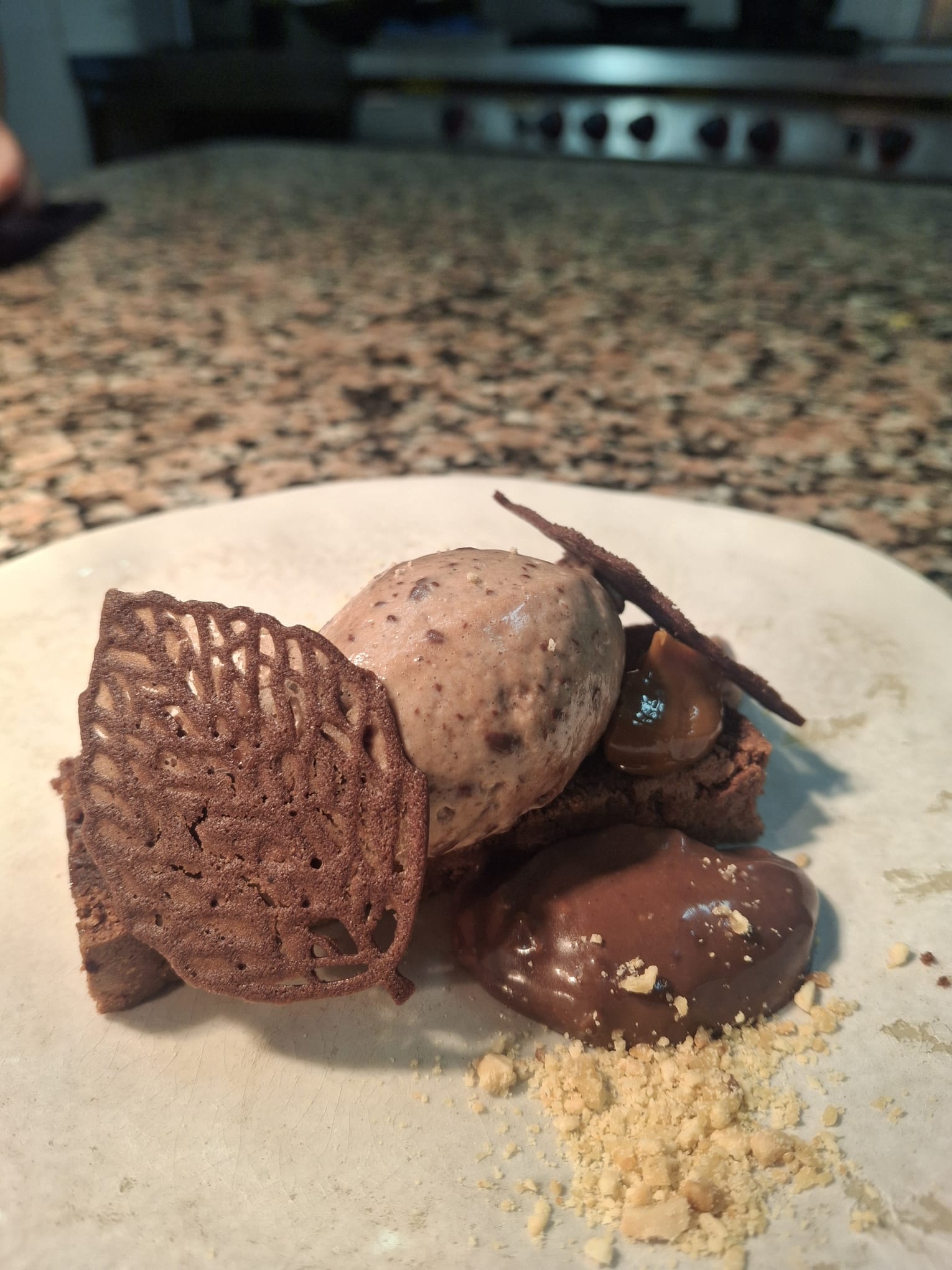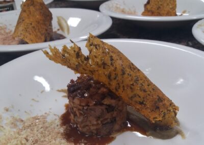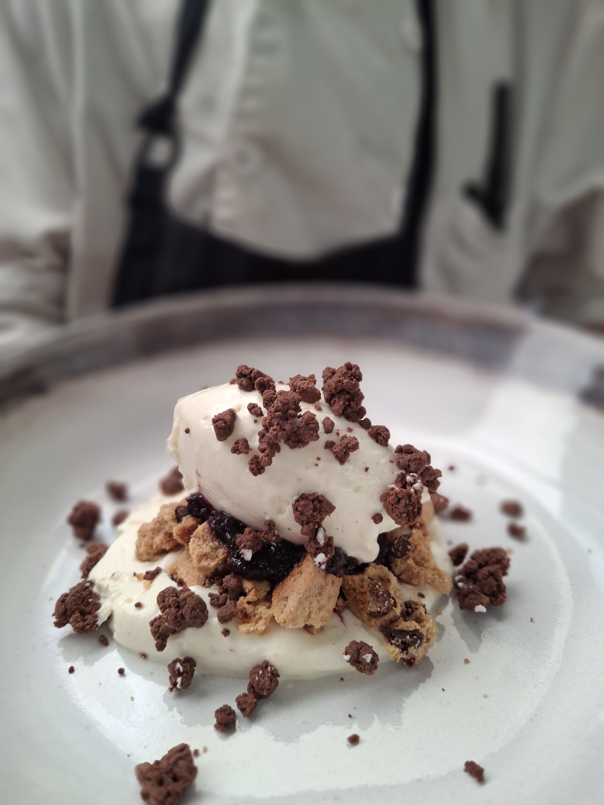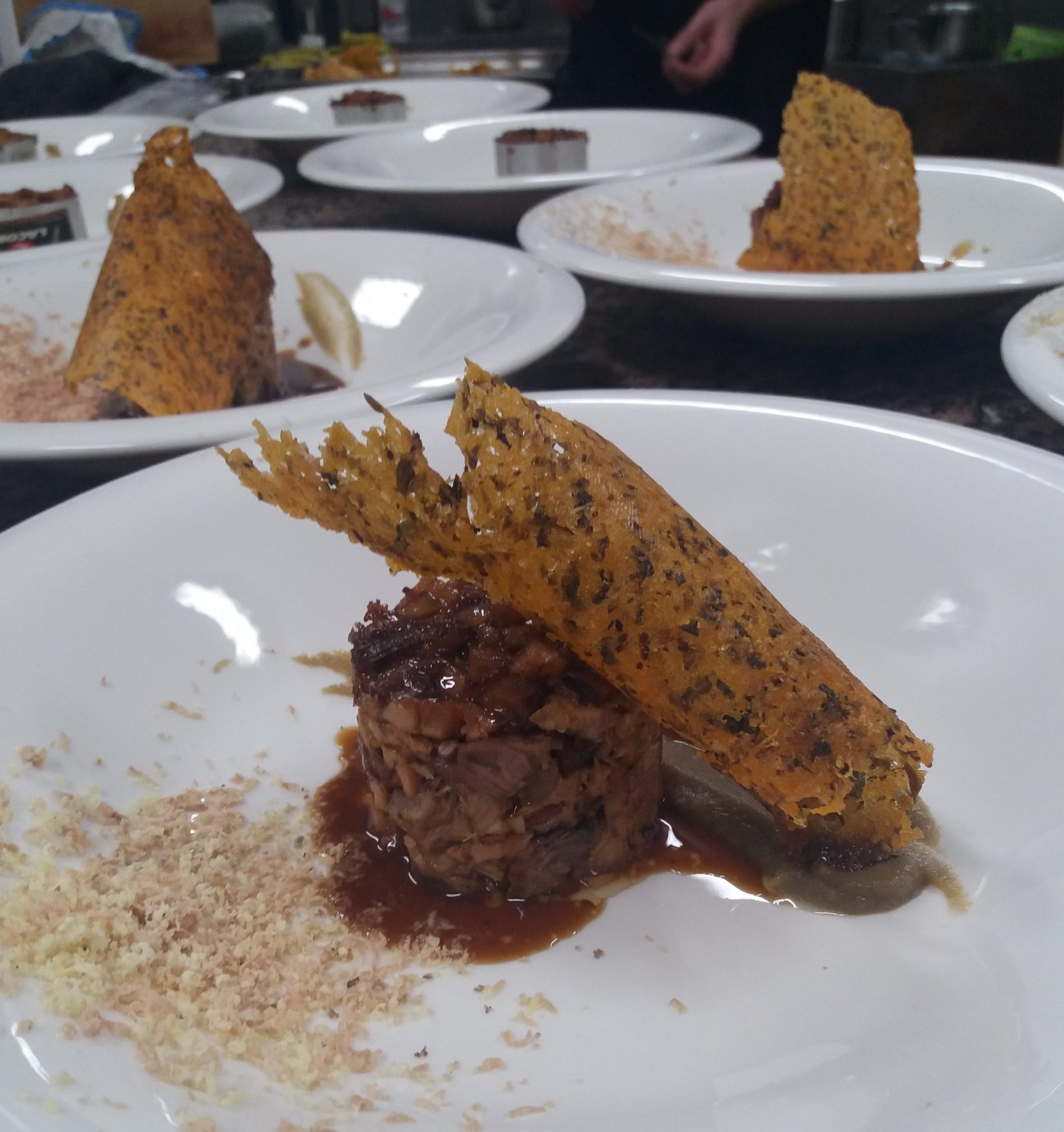 - COSTILLA DE CERDO DESHUESADA CON SALSA DE OSTRAS, MANZANA, SÉMOLA DE TRIGO Y GRANOLA DE KIKOS (si no tomas cerdo te damos otra opción de carne, avísanos en tu reserva)
