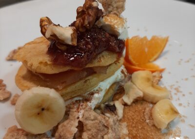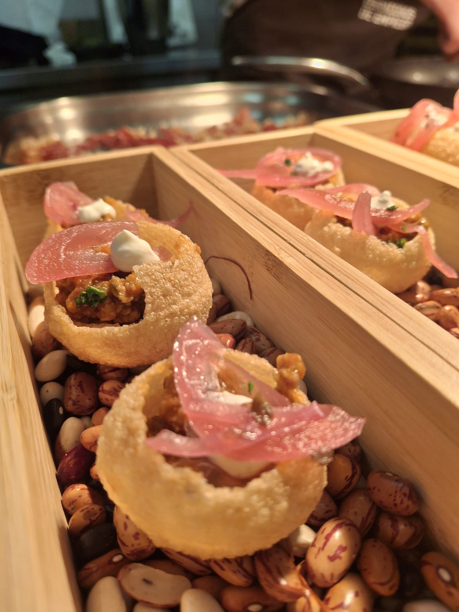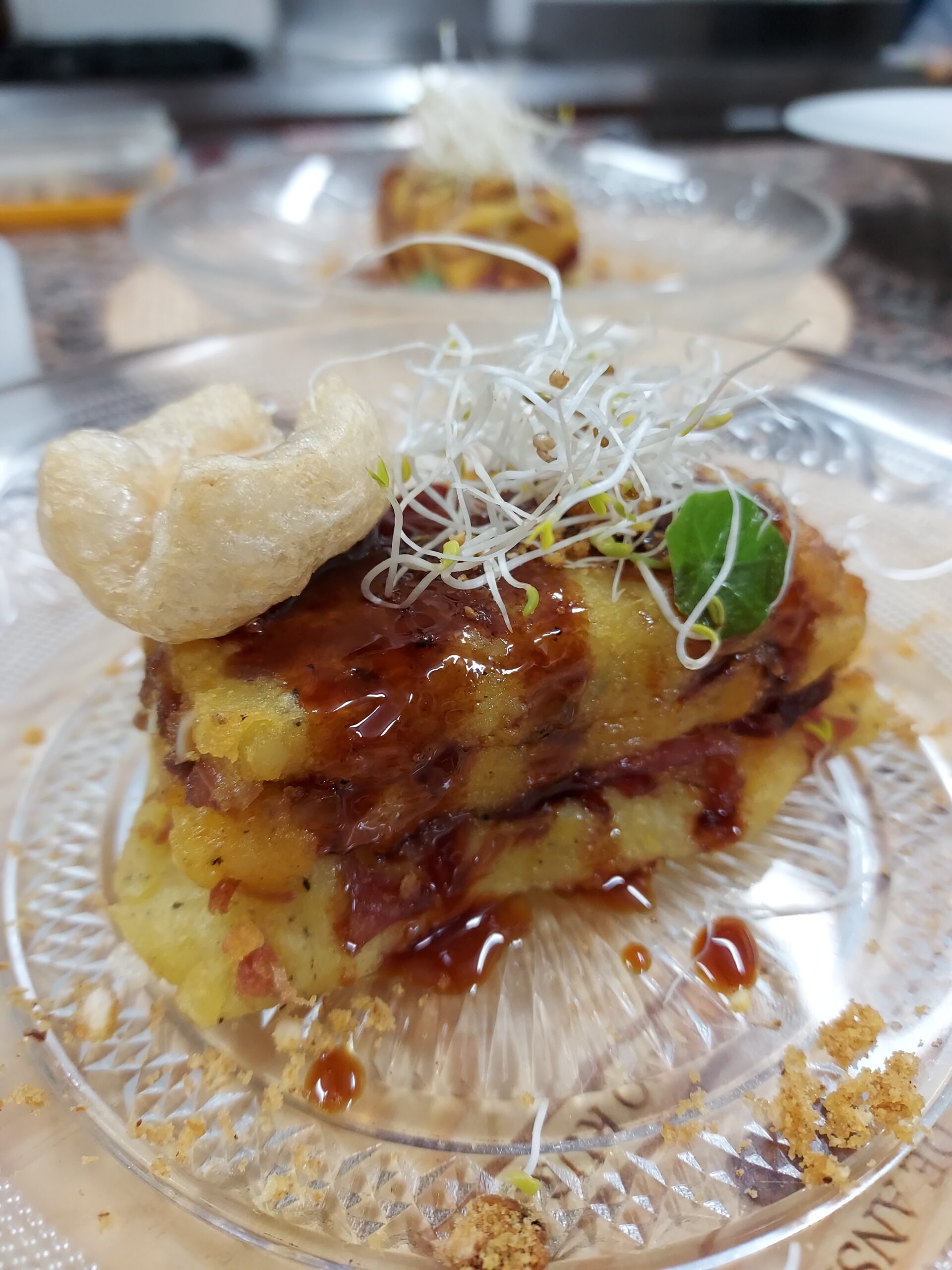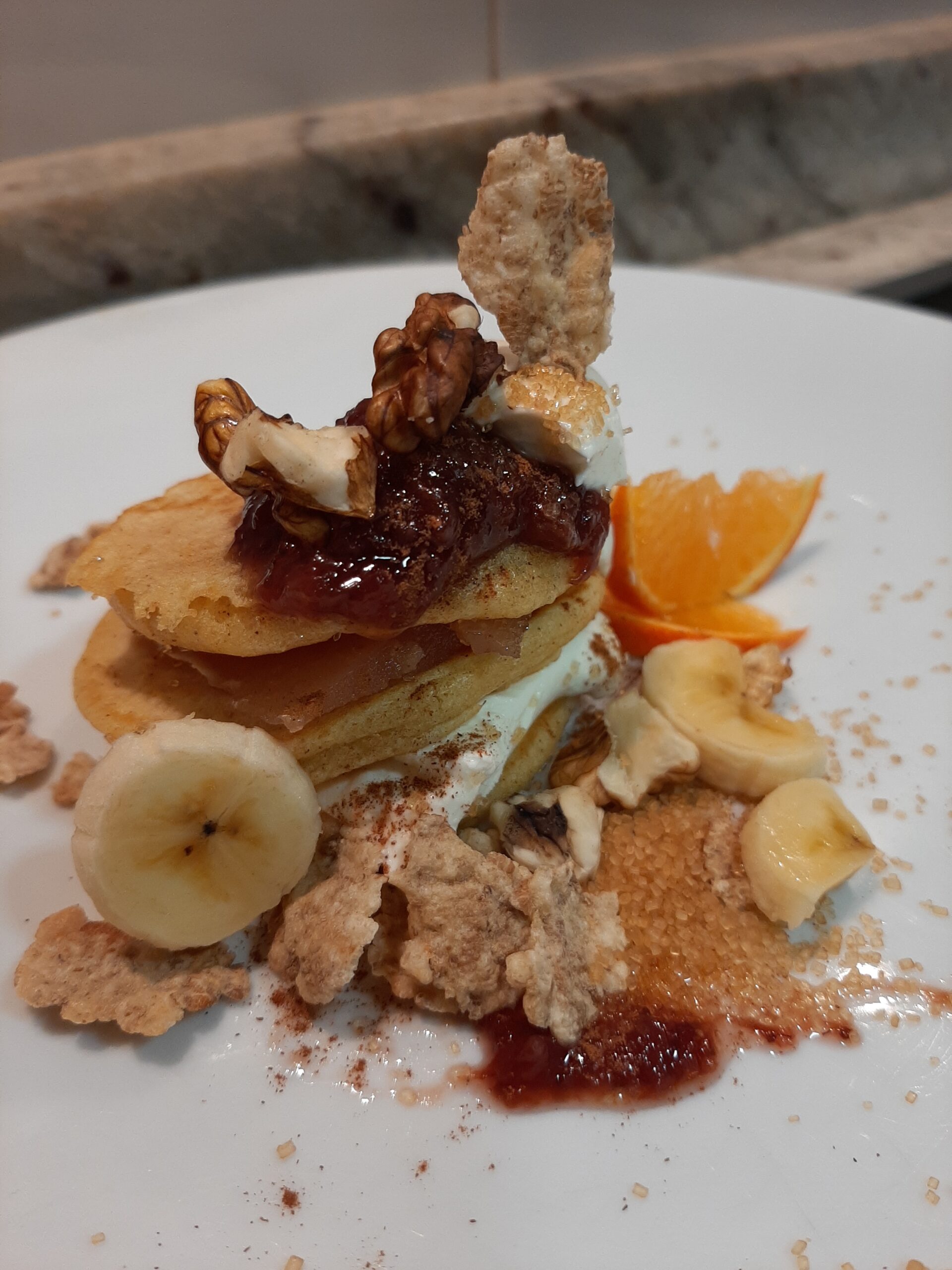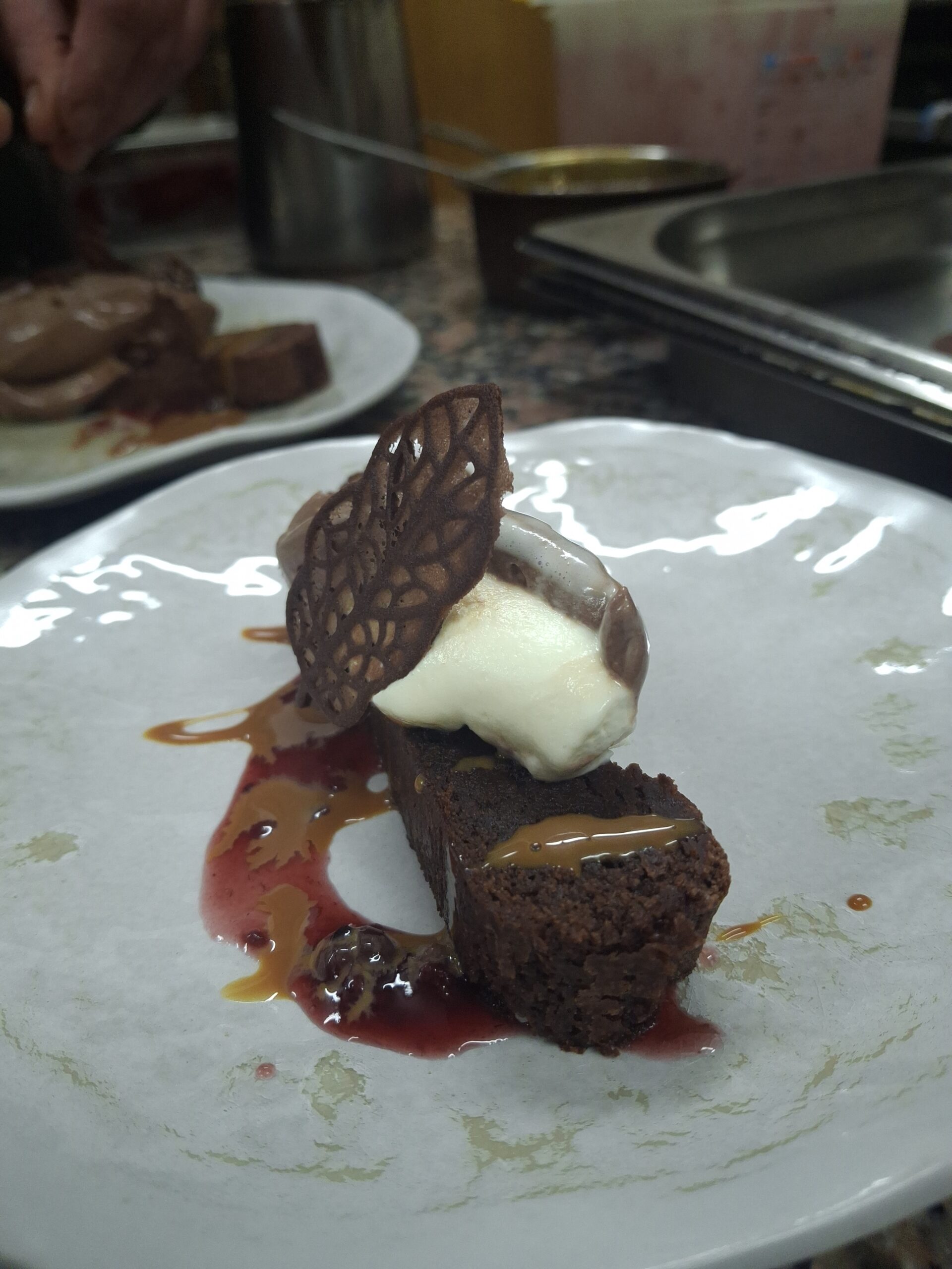 - COSTILLA DE CERDO DESHUESADA CON SALSA DE OSTRAS, MANZANA, SÉMOLA DE TRIGO Y GRANOLA DE KIKOS (si no tomas cerdo te damos otra opción de carne, avísanos en tu reserva)