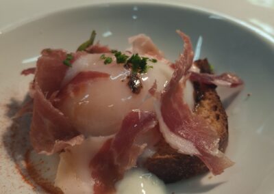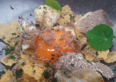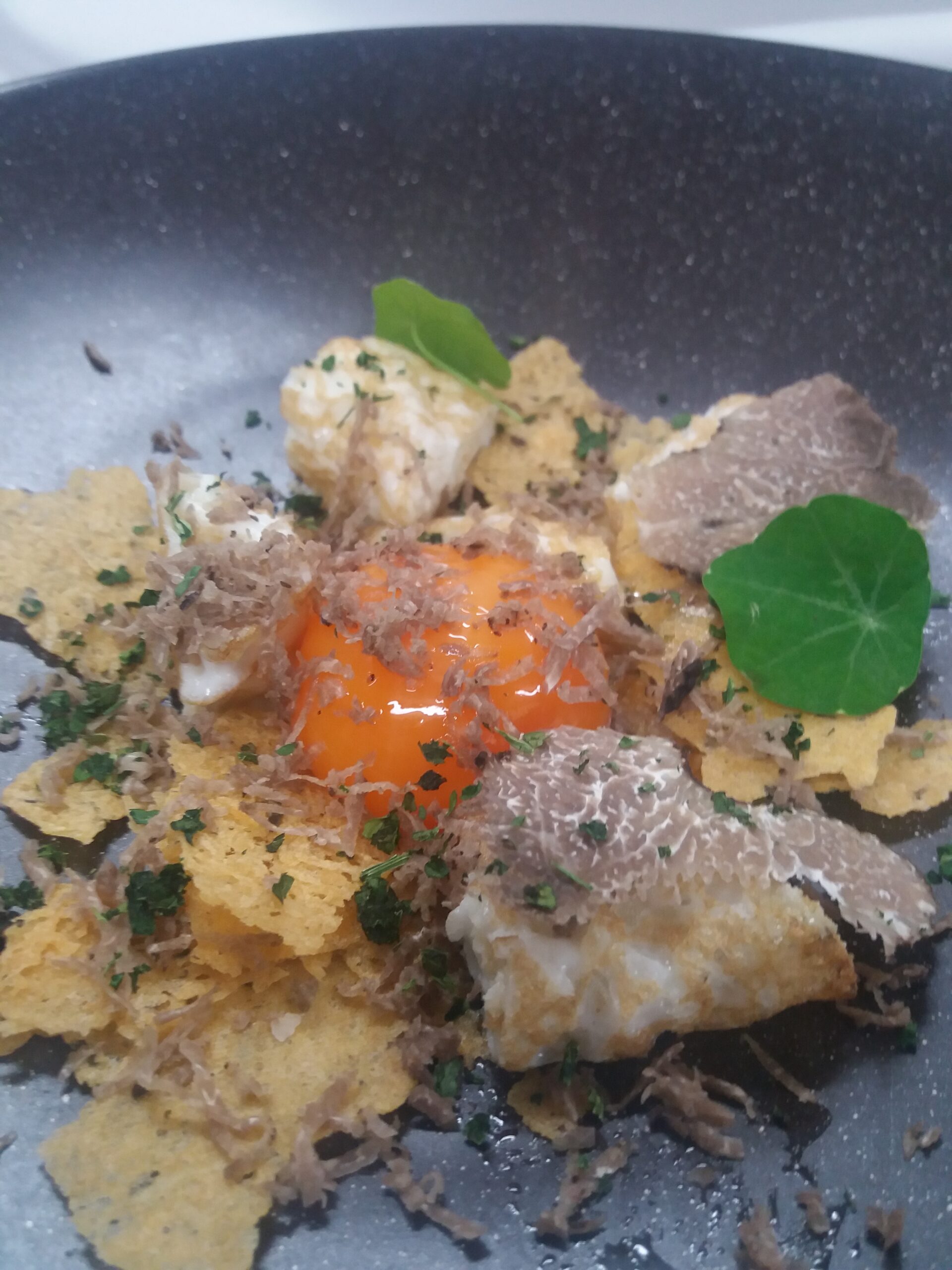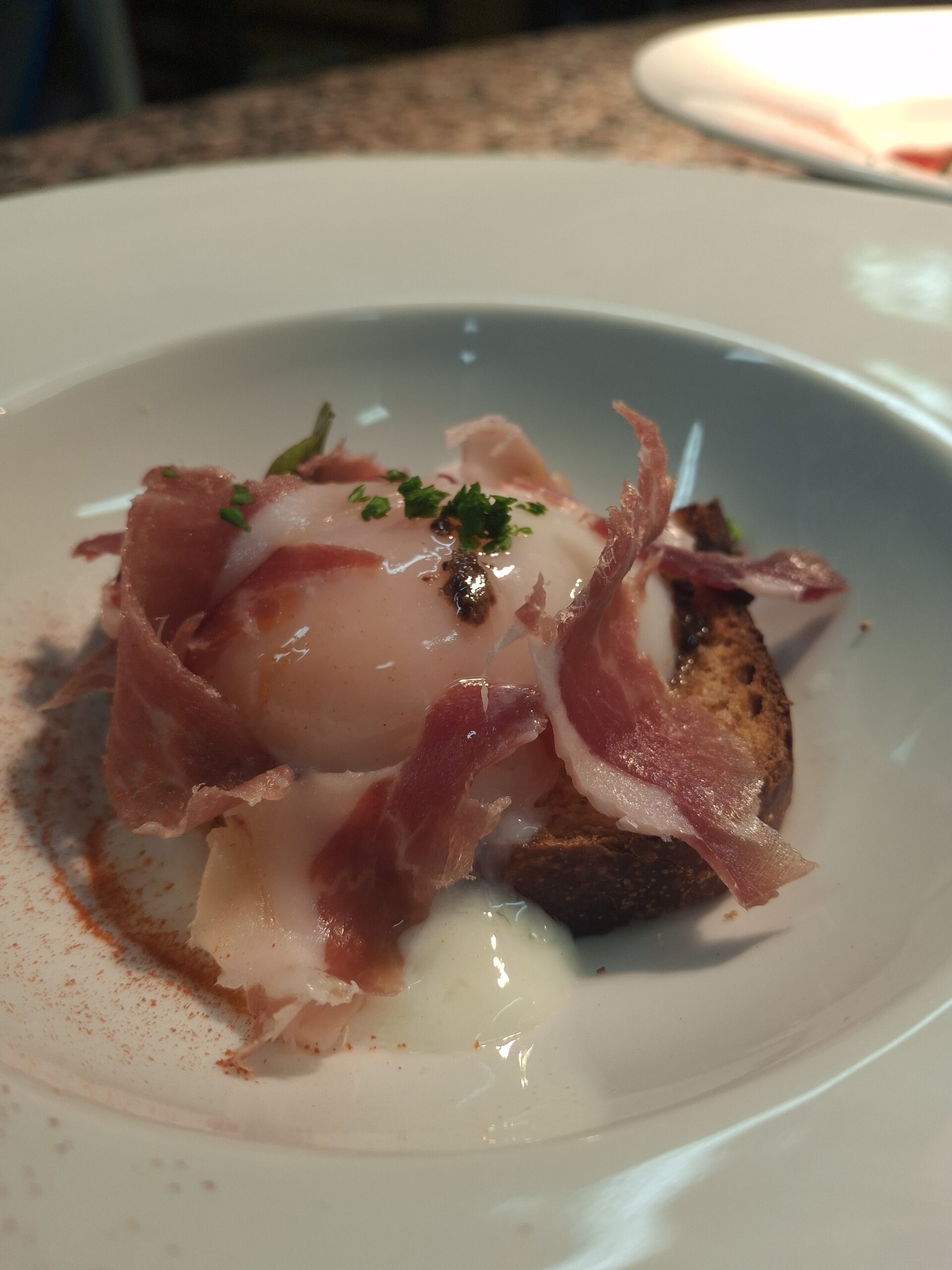 | • Huevos con jamón ibérico y aceite de trufa negra | |