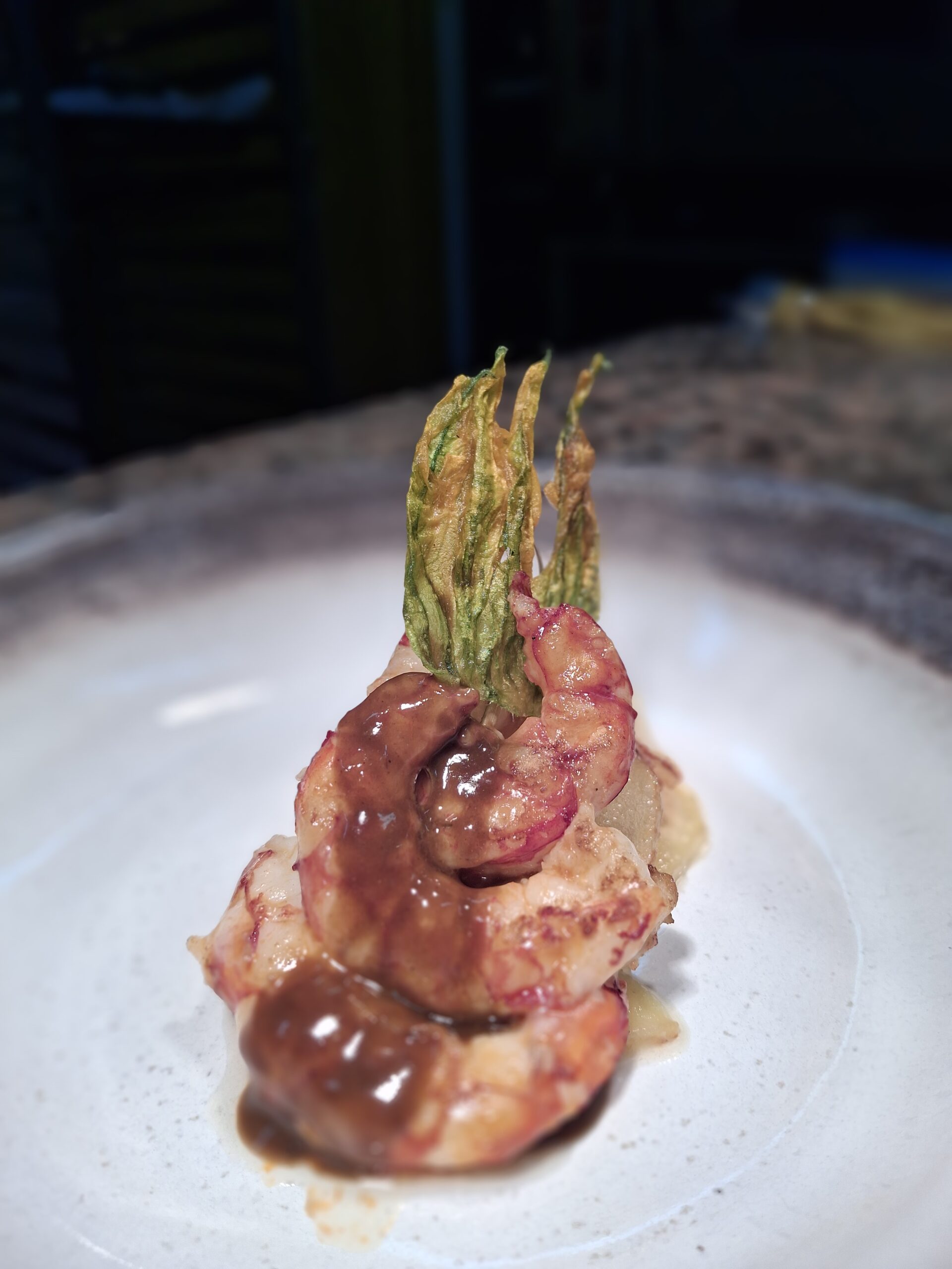 - BROCHETA DE GAMBÓN GRANDE CON JUGO DE SUS CABEZAS