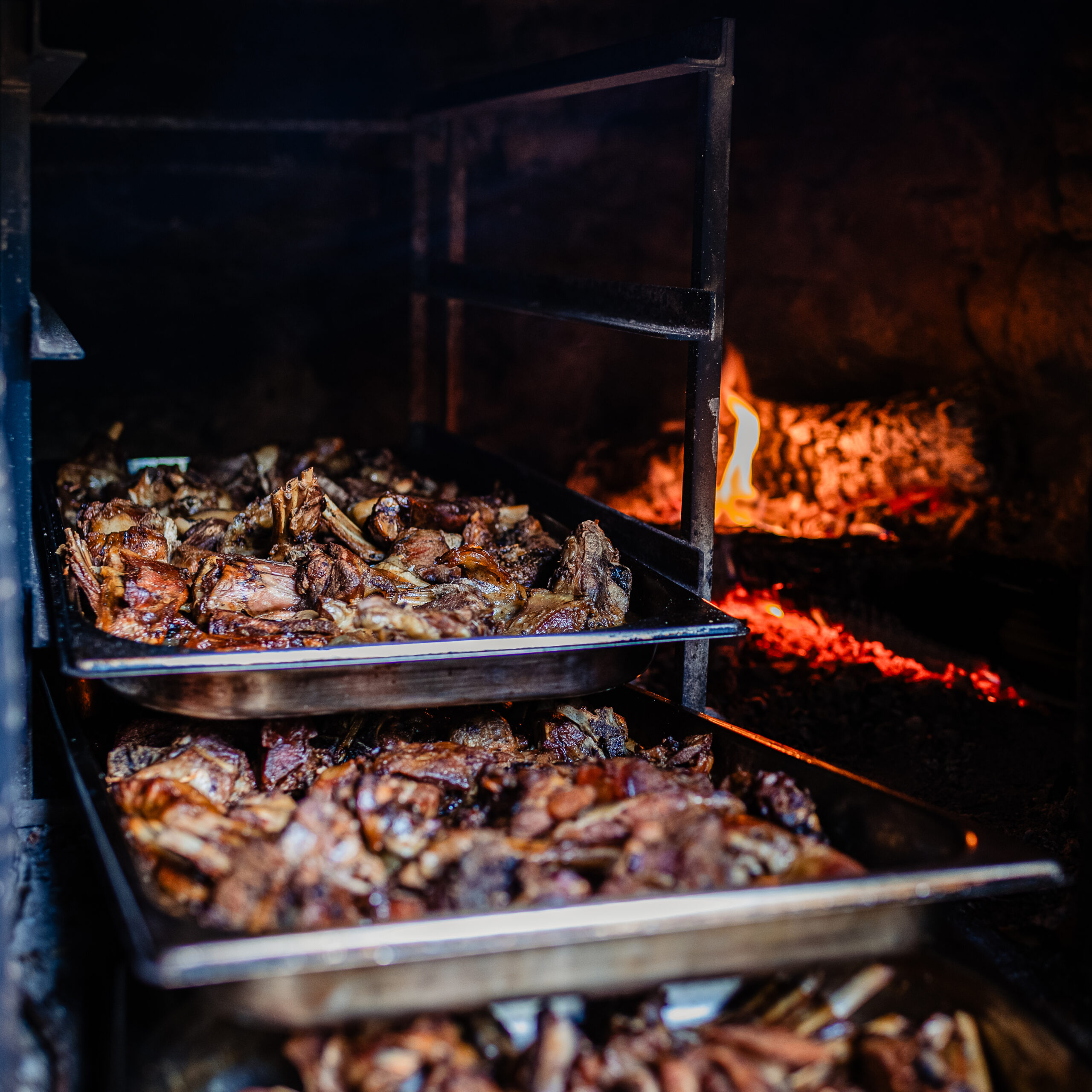 - CORDERO ASADO EN HORNO DE PIEDRA CON PATATAS ASADAS Y ENSALADA